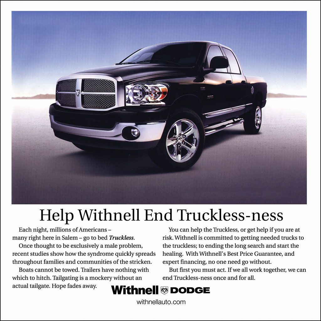 We’ve taken care of every aspect of Withnell’s marketing for over 18 years. In the beginning, we revised their logo and took on their high-volume newspaper ad campaign; giving them a unique brand look. Since then, we’ve designed their websites (several iterations), done their television ads, and made extensive use of social media ads, landing pages, and email campaigns.